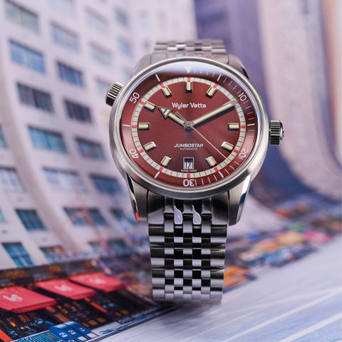 Die Version 2024 übernimmt alle ästhetischen Merkmale des Jumbostar-Chronographen und behält dabei den ikonischen, vielseitigen und zeitlosen Stil des Modells bei. Es eignet sich für jede Gelegenheit und ist dank der Wasserdichtigkeit von 10 ATM und der drehbaren Innenlünette sogar für den Einsatz unter Wasser geeignet.